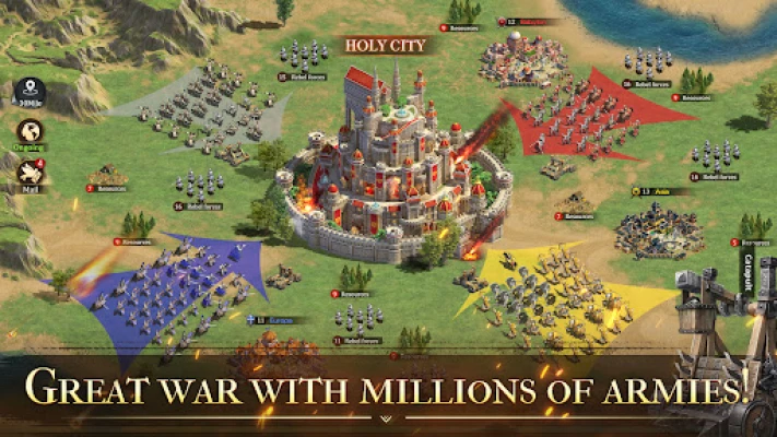 Real world map with the original Medieval style. Diverse terrains such as deserts, lakes, forests will change the situation of war. Expand your territory to station more forces.